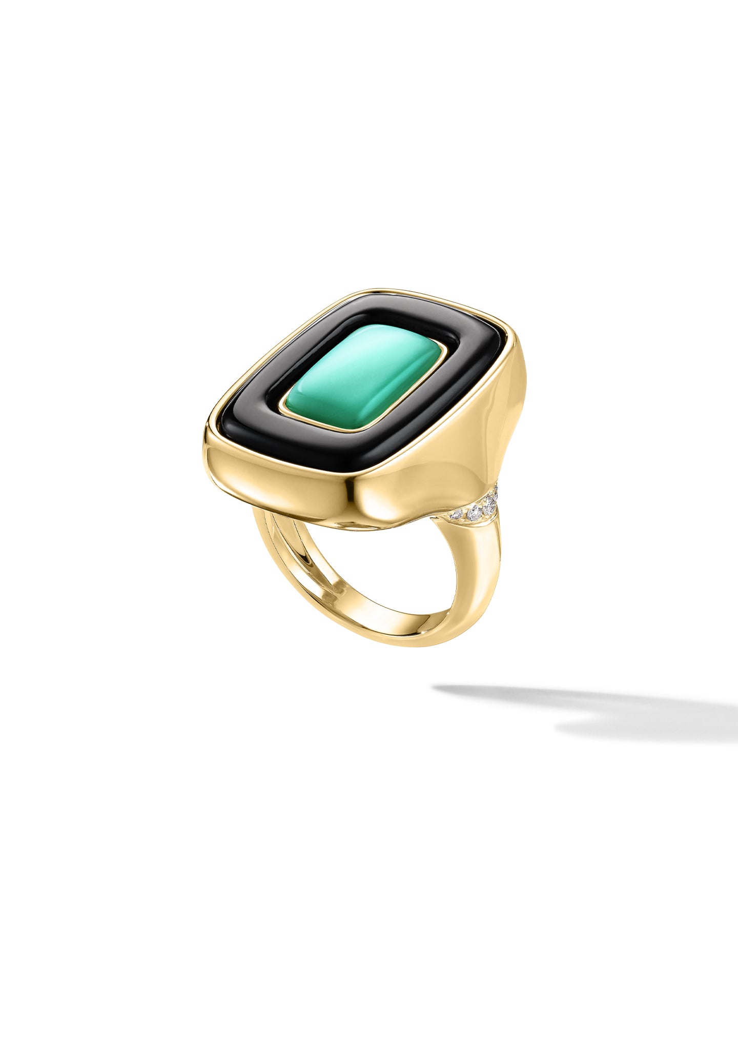 18K Gold Four Way Flip Ring with Black Onyx, White Agate, Mint Chrysoprase, & Pavé Diamonds (0.61 CTW)